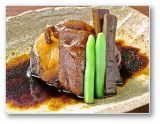 脂の乗ったブリかまを煮付けました。主に富山産を使用。氷見ブリ、能登ブリ、佐渡ブリなど、北陸が名産地です。